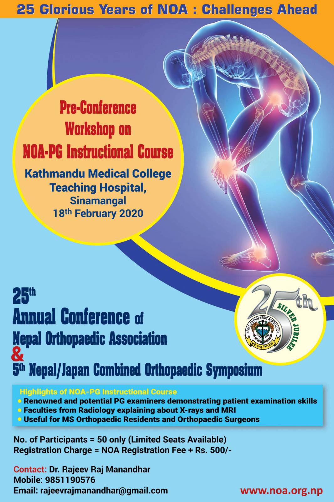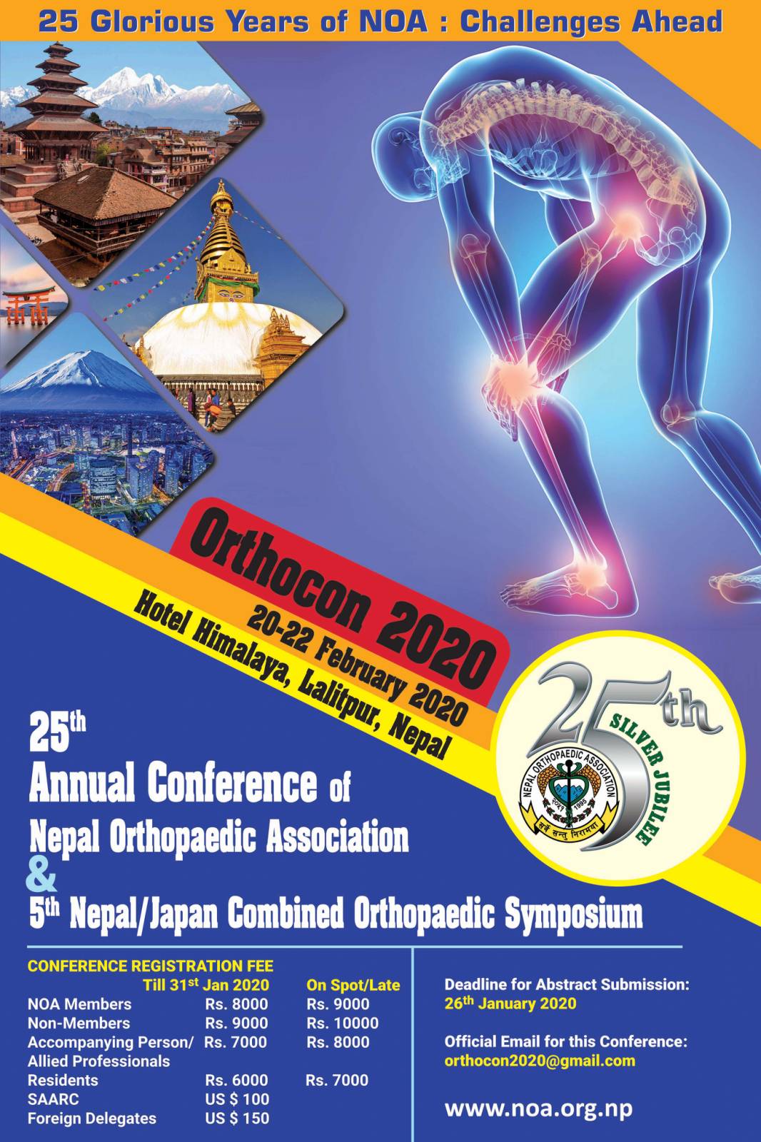 Nepal orthopedic Association is conducting ORTHOCON 2020 on its auspicious occasion of 25th Glorious Annual conference . Details and deadline are below .